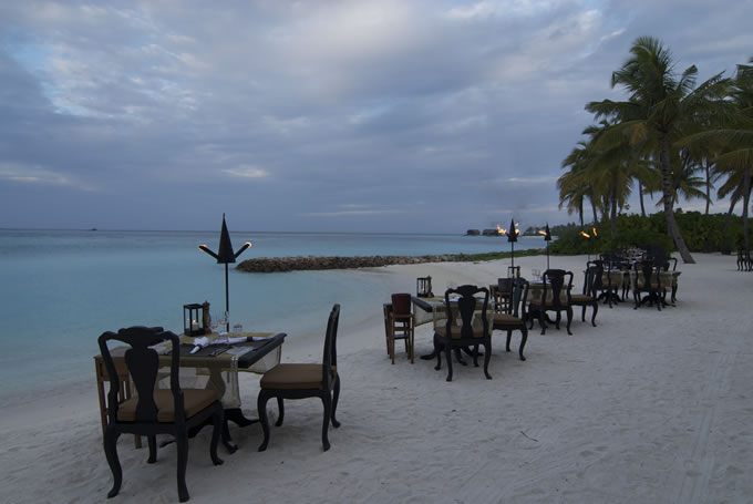 そして真っ青な空が朱に染まり出す頃、「ワン&オンリー・リーティラ」には、一日のうちで最も美しい魔法の時間が訪れる。キャンドルが優しく灯るなか、黄金色の海に溶けていく太陽。そのとき永遠に忘れることができない瞬間を目の当たりにした者は、必ずまたモルディブを訪れる。それこそがこの島の魔法であり、我々はそんなリーティラの魔力に悦んで酔いしれるのだ。