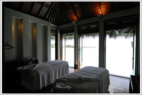 また、モルディブで最大級の規模や施設を誇るスパもぜひ体験したいもの。他の施設からほどよく離れた場所に、手入れの行き届いた芝生が広がる静寂の庭園がある。海を望むプライベートヴィラに通されると、アーユルベーダを取り入れたホリスティックセラピー、バリ式、タイ式、指圧など、実に多岐にわたる至極のトリートメントが待っている。