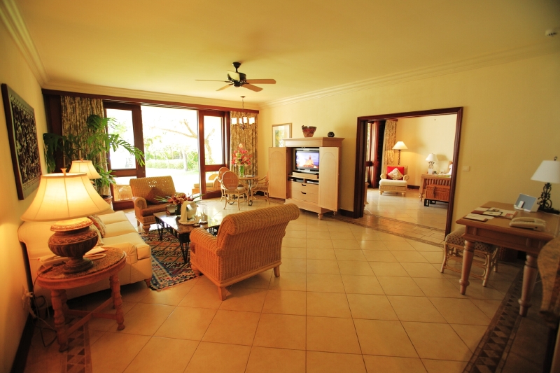 モーリシャスのクラシックな邸宅風で、広さはジュニアスイート(キングサイズベッドのタイプ)約10室分(!)。ラグジュアリー感溢れる『ワン&オンリー ル・サンジェラン』のなかでも、とびきり贅沢な空間だ。