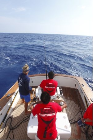 そして2日目のゲームが始まった。今日のボートは50フィートと大きめで、きわめて居住性もいい。HIBTでは、自分でチャーターボートを選べない。船はすべてクジで決められ、しかも日替わりだ。腕とカンのいいボート・キャプテンに当たれば、それだけビッグ・ブルーを捕らえる可能性も、また船上で過ごす時間の快適さも増す。その運も競技の一部分なのだ。