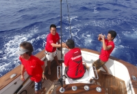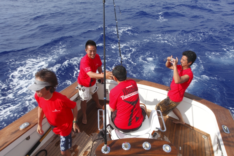 そして5日間のバトルは幕を閉じた。今年の結果は、計800ポイント。 一昨年優勝、昨年は総合2位という輝かしい成績を持つチームだが、今回は残念にも上位入賞に及ばなかった。だが、運が多分に作用するのがゲーム・フィッシングの世界。メンバーたちは、それもまたありと達観の様子。入賞はさておき、カジキ2本を当てた林を含め、アングラーを担当した金田、山口と3人全員がヒットを取ったのは満足できる結果であった。桟橋に降り立ち、最後のポイントチェックを終えた林の表情に、悔いはなかった。