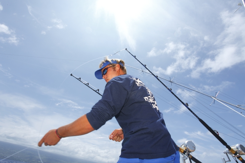HIBTでは競技対象になるフィッシングの範囲が決められている。とはいってもその範囲は広大で、たとえ40チームがいっせいにトローリングしたとしてもニアミスはまずありえない。ハワイ島の西岸(直線距離にして南北約160キロメートル)、沿岸から約20〜40キロメートル沖までの海域が競技エリアで、この範囲ならどこでトローリングしてもいいのだ。