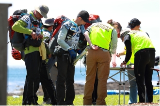 一方、ミッドキャンプのRDはコースである国立公園の植生保護のために、バイクや靴など装備品の洗浄を行っていた。タスマニアはオーストラリア国内でも特に植生保護の管理が厳格である。レース中に2度、この洗浄を行うことが義務づけられているのだ。ここで食事と1時間の睡眠をとった4人は次のコースタル・トレッキングに出発する。