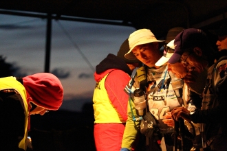 多くのチームが日没前にトレッキングからマウンテンバイク(以下、MTB)に乗り換え走っていく中、RDがTAにたどり着いたのは日没後だった。