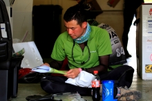 一方、キャプテンの南大介(以下、南)は「SPOT」と呼ばれる発信機を受け取りに大会本部へ行っていた。この「SPOT」が発信するGPS信号により、レース中インターネットを通じてチームの位置を把握することができ、また選手は衛星経由でのSOS信号の発信も可能となる。