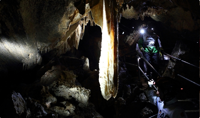 狭く、暗い、洞窟もレースの舞台だ。