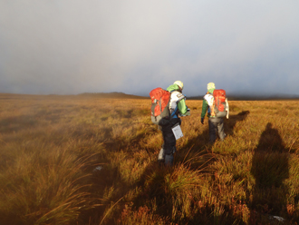 総距離700km超といえば当然風景もいろいろだが、このセクションは特徴のないフラットな地形だったため、正確なナビゲーションが必要とされた。しかも雨が降り始め、強風が吹き、瞬く間に霧に視界を遮られてしまった。まったく前の見えないホワイトアウトの状況。さらに湿地帯だったため足下は常に濡れて白くふやけ、日も落ち、RDはこのまま移動するのは危険と判断し、2時間ほどビバークすることにした。