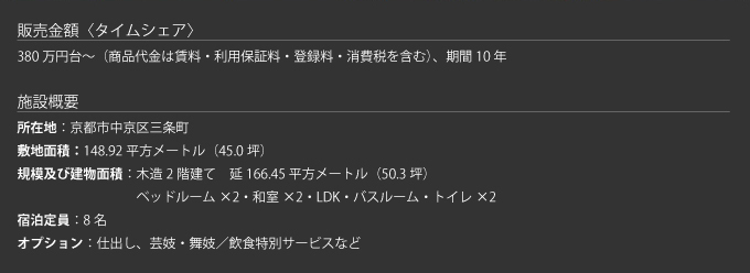 京都を訪れたのなら、誰もが足を運びたい祇園や、錦市場。その繁華街の近くにありながら、その喧騒とは無縁なほどに静かな風情。同物件の面する新町通りと言えば、祇園祭りの季節には、壮大な山鉾が練り歩き、夏の夜を彩る、まさにその中心地。2階の大広間は、目前を通る山鉾を見ながら酒宴に興じることのできる、まさに特等席です。