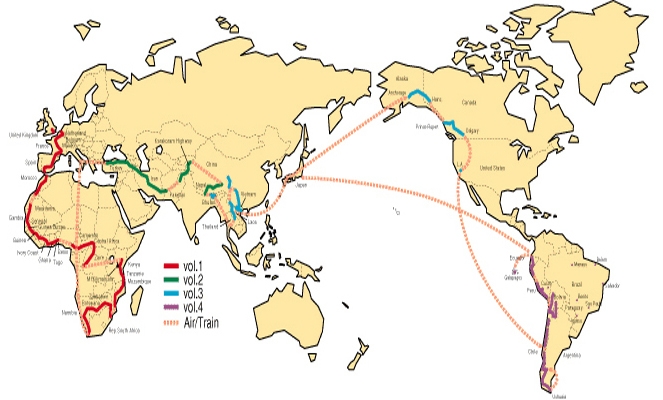 ヨーロッパの歴史的建造物や田舎道、アフリカの赤い大地と砂漠、中東、シルクロード、ヒマラヤの麓を走る広大な道、中央アジアの草原、オーロラの空、アンデスの村…その雄大な景色と、それぞれの土地で出会った人々の温かな笑顔。