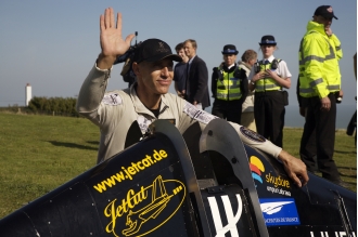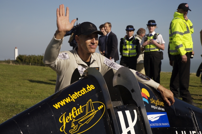 ──それはないですね。ジェットウィングで空を飛ぶと聞くと、何だか狂喜じみたことをやっていると考える人もいるでしょうが、パイロットとしての経験は多いに役立っていて、皆さんが考えるほど危険であったり、大胆なことではないんです。というのも、飛行機に乗るときは、何かあったときにそれを実行するプランBというのがあるんですね。エンジンが止まっても補助エンジンが作動して、無事に乗客を運ぶことができる、といったぐあいに。自分もプランBを必ず持っています。パラシュートがひとつダメになっても、もうひとつパラシュートがある。みなさんが考えるほど、危ないことではないんです。ジブラルタルのケースでも、分厚い雲のなかでコントロールを失ってしまったので、装備しているものをすべてとって、パラシュートで降下しました。