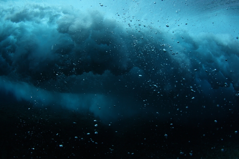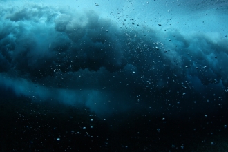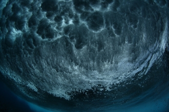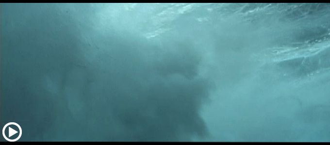 例えば、波が作り出す水の高速回転が速いほど、回転している部分としていない部分との境目にはっきりとした線が浮かび上がり、その線を境に、まったく異なる模様が海の中に描き出される。また、波の崩れ方が大きければ大きいほど、水中に差し込む太陽光線が遮られるため、海中は暗くなる。