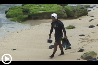 余計な機材を持たず、カメラひとつで果敢に波に挑む杏橋氏の姿が必見![画像クリックで動画を再生]
