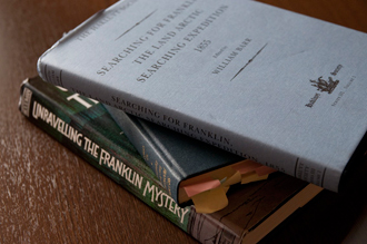 北極探検史最大の謎ともいわれるフランクリン隊に関する文献の数々。角幡は原書を読む。