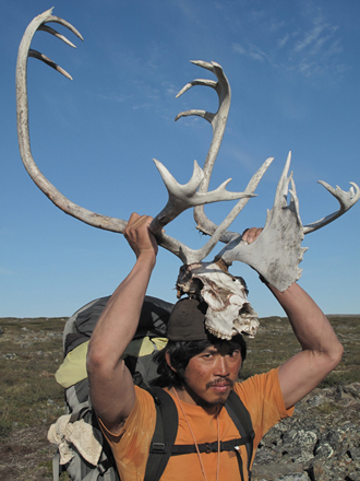 北極圏の冒険のおわり、大陸を進む中で見つけた鹿の類と思われる立派な骨。
