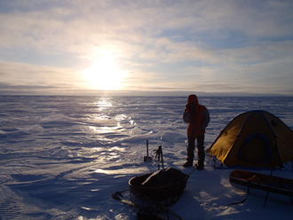 「文部科学省の独立行政法人で海洋研究開発機構というのがあって、で、そこで北極を専門的に調査しているチームの方と知り合ったんです。昨年は気象の観測をお手伝いさせてもらいました。バレーボールぐらいの大きさで、重さ2・5kgぐらいの機械を、私が引くソリに積んで、3時間おきに人工衛星を通じて気温や気圧のデータなどが送られていく。従来の観測は基本的に一点、固定されたものからデータを取るわけだけど、私は移動しますから。“点”の観測を“線”に出来る。それから、これは大学の研究なんですが、雪をサンプルとして持ち帰って、大気汚染の物質がどれくらい含まれているかを計測する協力をさせてもらったりしています」