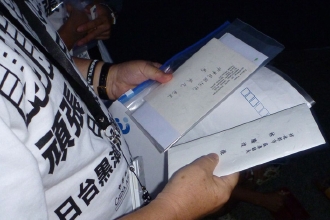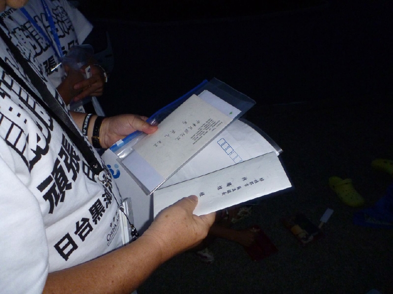 被災地の岩手、宮城、福島の知事から託された、馬英九総統へのお礼状。