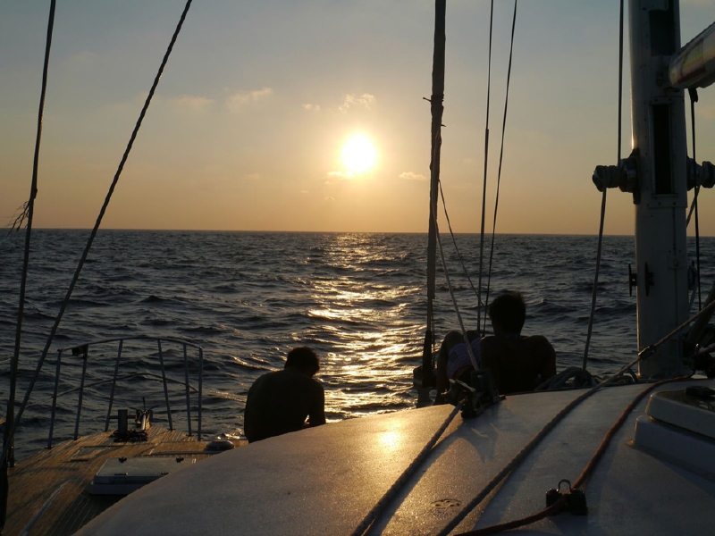 「海が時化て、本当にヤバイなって思った。並走するカヌ-が引っ繰り返って、人が投げ出されたら探そうにも見えないし、これは危険だということで一旦船に上がりました。〈強風〉〈高い波〉〈暗闇〉、この3つが揃うのはまずかった。みんなで太陽が出るのを待ちました。」