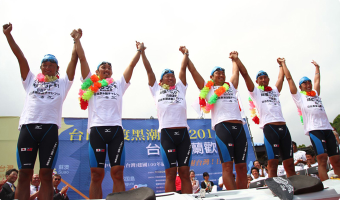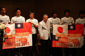 自らを「猪突猛進型」という鈴木が、すぐにWEB検索して見付けたのが、「日台スポ-ツ・文化推進協会」だった。その時、会いにきた鈴木に対応し、その後この挑戦の実行委員長になる松本彧彦氏は、海部元首相の元秘書という経歴を持ち、台湾から外交勲章を授与された日台関係に力を持つ人物だった。さらに与那国島に飛び、台湾への航路を渡ったことがあり、東シナ海を流れる黒潮を熟知する海の男・真謝喜八郎氏に協力を仰いだ。真謝氏から伴走船を確保し、日本のバックアップ体制も固まった。6月には「日台黒潮泳断チャレンジ」実行委員会が発足し、9月17日の開催に向けて、本格的に走り出したのである。