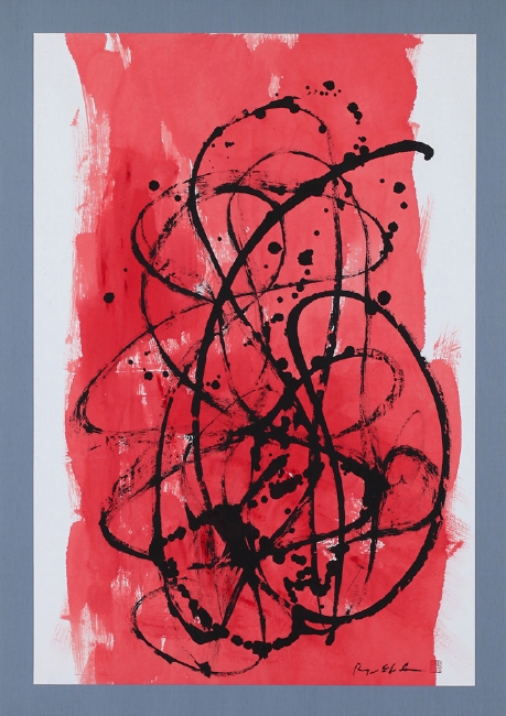 露巌がかつてマレーシアの森の中で出会った古木にインスピレーションを得て書いた作品『Black in Black』は、ヨーロッパでの評価も高い。