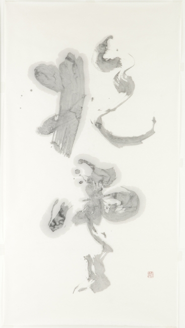 彼は魂を表現するため、時には書の原点である中国を訪れ、時には太古の森の奥深くまで足を踏み入れる。そこでじっと紙と向き合い、墨の流れとして表現している。