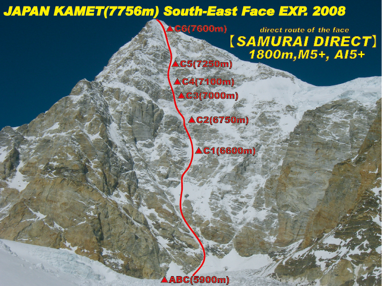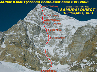 2008年に登頂したインドのカメット峰未踏の南東壁のルート。