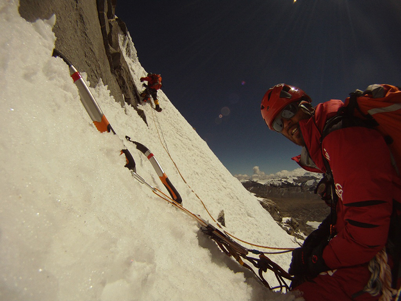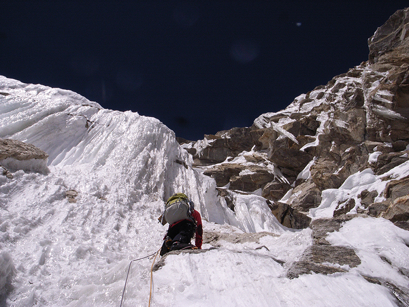 ナムナニ峰のキャンプ2下部の登攀。