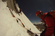 2012年、シスパーレにて強風の中、絶壁に挑む平出、自ら収録したムービー。
