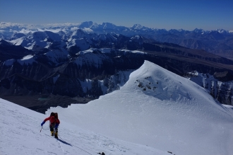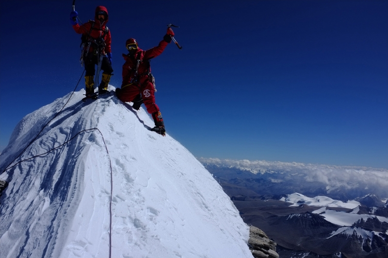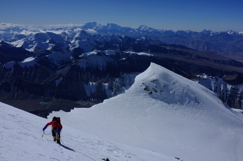 「自分たちにしか分からない感動がありました。また南峰を登頂した瞬間、聖山カイラスとマナサロワール湖の織り成す壮大な景色も見ることが出来ました。その後は、降りるにはあまりにも登ってきた南面ルートが危険なため、主峰へ縦走し、ノーマルルートを下降することになりましたけれど」