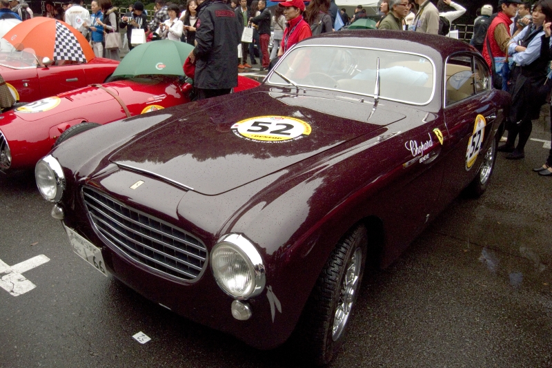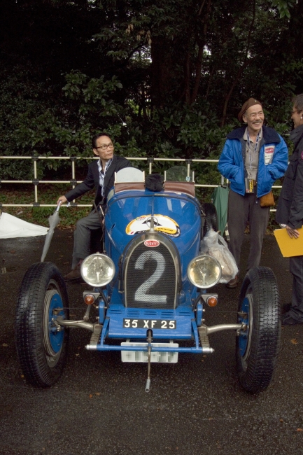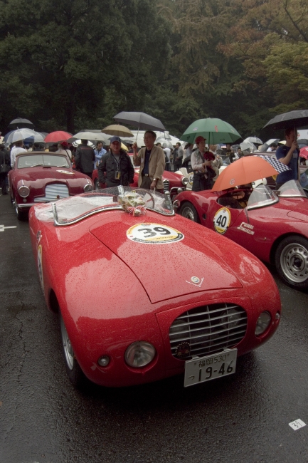 糸を引くような秋の霧雨が神宮の森を濡らしています。いとおしく磨き上げられた宝石のようなクルマたちのボディが、かえっていっそう艶かしく輝いています。