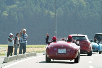 さて、スタートの明治神宮から六本木ヒルズを通った出場者たちは、そのまま高速に乗り、一路裏磐梯を目指します。ルートとなった沿道には地元の老若男女が 旗を振り、声援を贈ってくれます。地元の人々にとって「ミッレ ミリア」は年に一度のお祭り。これを見ていると、本家イタリアのごとく、“ヒストリックカーを愛する”という世界観が根付き始めていることを実感します。 そんな観衆に木村さんたち出場者は手を振り、挨拶を返しながら、タイムを計算しつつ、ルートを確かめつつ、愛すべき古きクルマのコンディションに細心の注 意を払って、1600kmの道のりを紳士に走り抜けるのです。