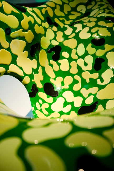 たしかに完成した作品を見ると、思わず触れたくなってしまう。作品のテーマは「カモフラージュ」。とはいえ、あくまで森田氏らしいカモフラージュだ。