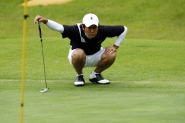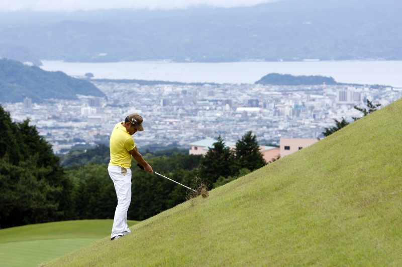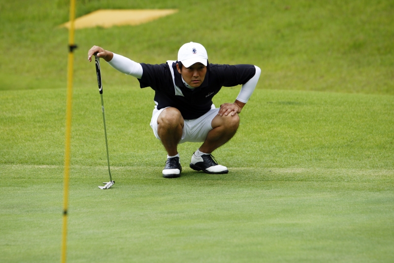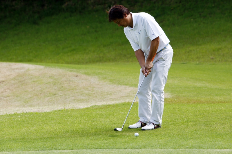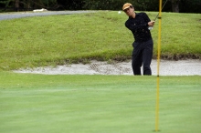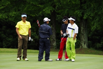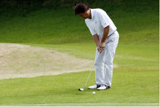 浜野は佐野と同じく体格がよく、飛距離が出るタイプのプレーヤーだ。しかし、そのスイングはゆったりと丁寧に振り下ろすもので、あえて飛距離より方向性を重視したショットを見せる。だが、この日は雨の影響が残る重いグリーンに苦しんだ。スタート時間直前まで雨が残っていたため、徐々にグリーンは乾きだすのだが、結果、コースを回るごとにグリーンコンディションが変化する。しかも、丘陵コースの特徴か、それとも地盤の違いからか、グリーンの乾き方にもホールごとに差があり、毎グリーンごとに微妙なタッチに差が生まれる。これには多くのプレーヤーが苦しめられた。