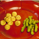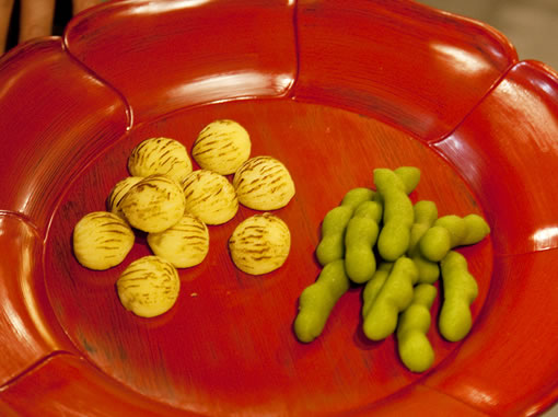 再び菓子器が運ばれ、栗と枝豆を模した干菓子をいただいた後は、二服目をいただく。