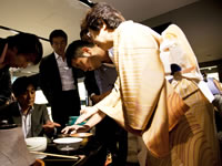 会がゆっくりと進行する中、参加者の一人でアクアリストの木村英智氏のところへお茶が運ばれた。