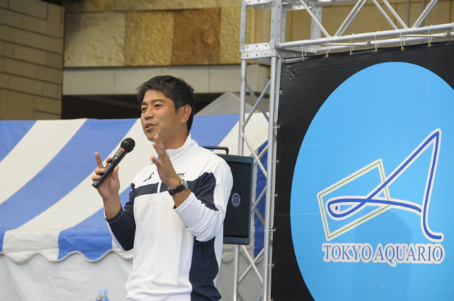 木村英智(HR:右)と、篠宮龍三(HR:中)によるトークイベントで幕を開ける。小雨がぱらつく天気となったが、木村による「海の生物飼育ワークショップ」講座(2限目)や、白戸太朗のトーク(4限目)のほか、篠宮龍三の「スタティック」実演(1限目)、銀メダリスト川嶋奈緒子によるシンクロの実演(5限目)など大盛況。