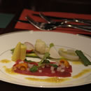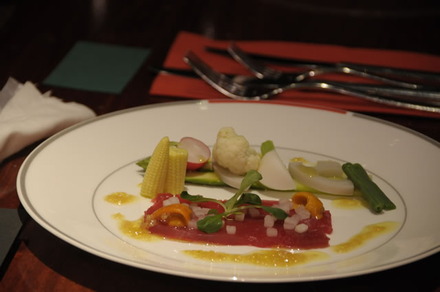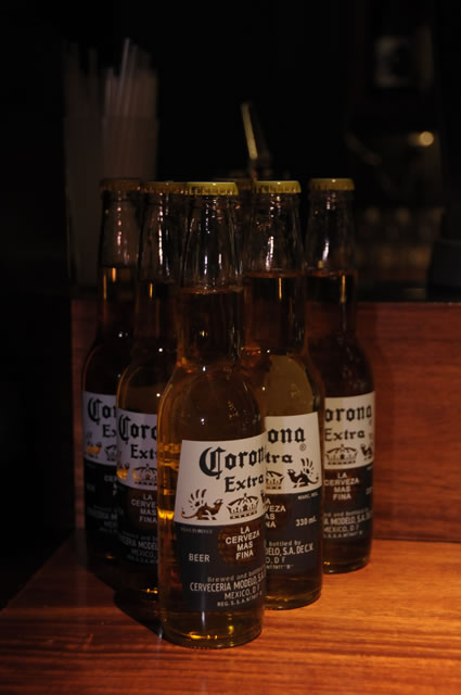 中:ディナーに振舞われたフレンチのコース、レミーマルタン、コロナビール。