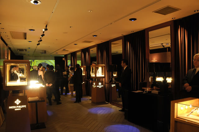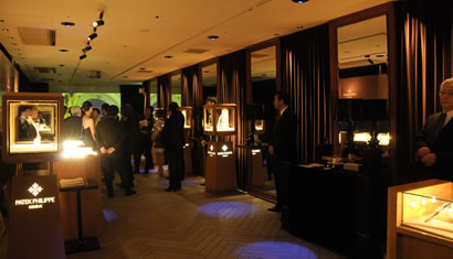 上:ホワイエのパテック フィリップ・ブース。