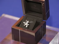 最初に出席者の目を引いたのは、パーティ会場隣のホワイエに設置された「PATEK PHILIPPE」ブースです。8つのショーケース内に並べられた、まばゆいばかりの輝きを放つ数々の時計の前に、多くの出席者が思わず足を止めていました。