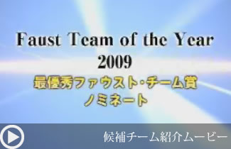 2009年の活動を振り返り、最優秀ファウスト・メンバー賞、最優秀ファウスト・チーム賞を会員の投票によって決定、表彰しようというものです。メンバー賞ノミネートの5名と、チーム賞ノミネートの5チームがVTRで紹介され、最優秀にふさわしいと思うメンバー、チームを出席者がそれぞれ選び、投票用紙に記入する方法で選考が行われました。