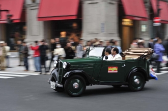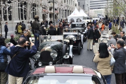 午前11時30分。長めのクランキングからエンジンを始動。展示されていたクラシックカーは目覚め、隊列を作り、エキゾーストノートを響かせ江戸桜通りを、三井本館前へと移動。日本のエンスージアストにより大切に保存されてきた車両は、まるでタイムスリップしてきたかのように、コンディションは抜群だ。