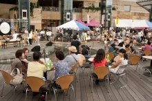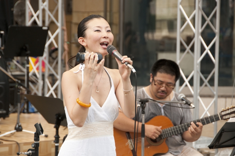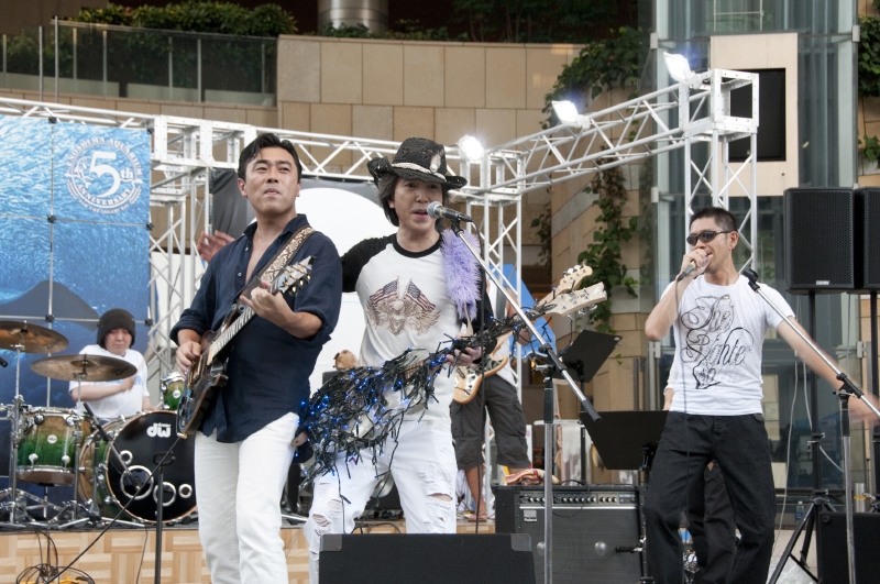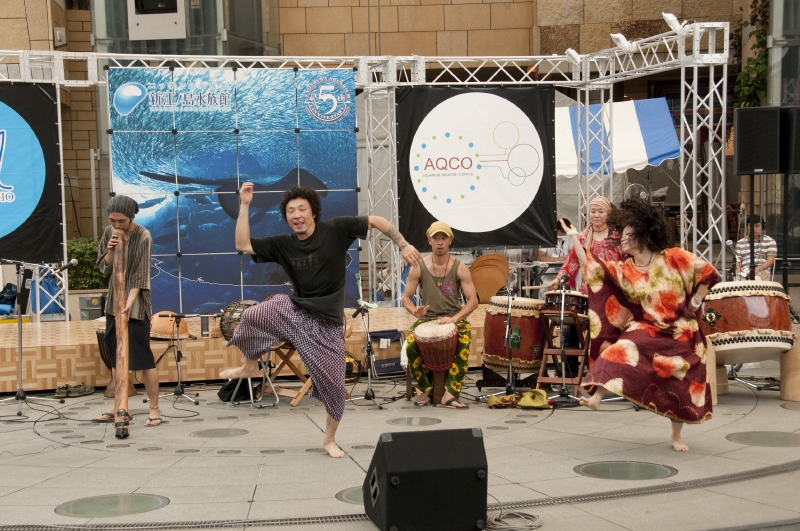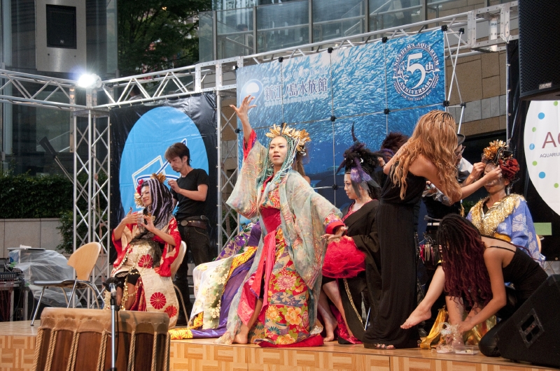 辺りが薄暗くなると、アクアリウムの美しい青が更に映え、幻想的な風景が広がる。最後のライブが19時に終わり、二日間、六本木の夏を彩った「東京アクアリオ2010」は静かに幕を下ろした。