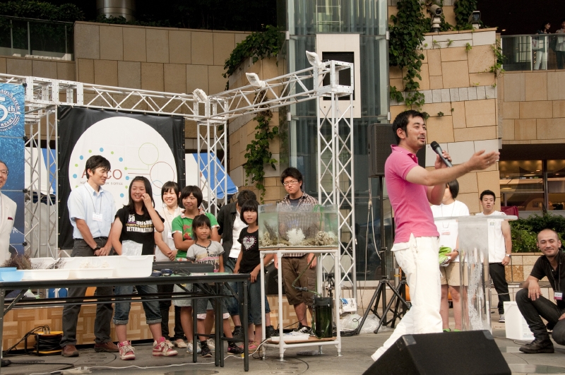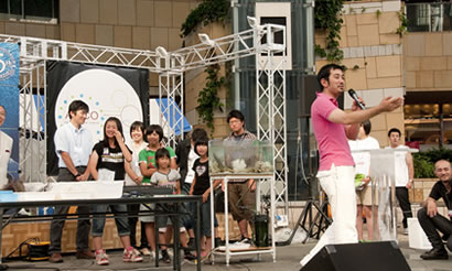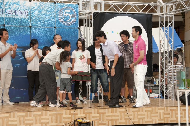 引き続き、木村が舞台上で子供たちにアクアリウムの作り方や、熱帯魚の育て方をレクチャー。子供たちは木村の話を熱心に聞きながら互いに協力し、完成した美しいアクアリウムには、満足そうに笑顔を見せた。