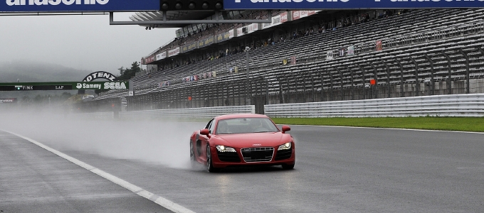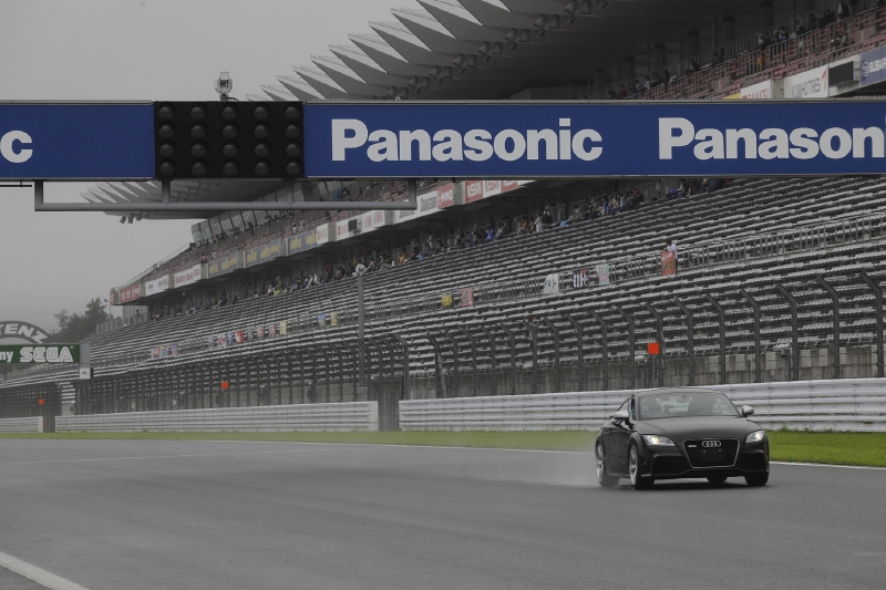 2回目となる今年は、前回と同じくアウディジャパンの協力のもと、最新のアウディ車であるR8/V10、R8/V8、RS6、TTRSの4台が揃えられた。V10エンジン搭載のR8とRS6の2台はMAX580PS、最高速度は300km/hをオーバーするモンスターマシン。一般道や高速道路では試すことのできないハイスピードランを、FISCOという舞台で味わえる貴重な機会だ。