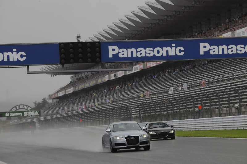 2周を終えて降りてくる参加者たちは、プロドライバーのハイパワーをコントロールするテクニックに感心しきりの様子だ。また、雨の中200km/hを超えるスピードでも、その絶対値を感じさせないアウディの安定感ある走りに感嘆。貴重な体験となった。