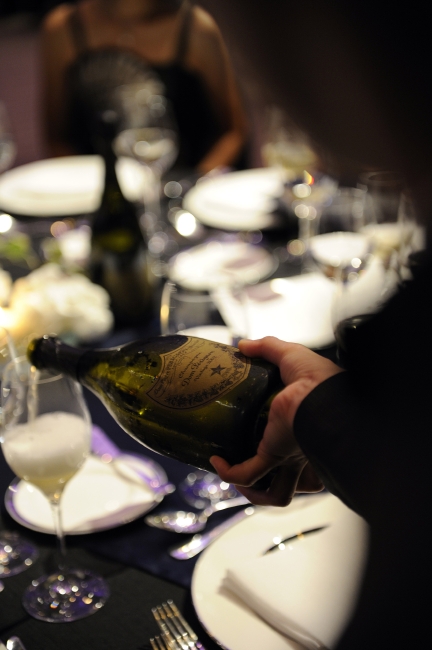 このディナーは、MHD モエ ヘネシー ディアジオとブルガリ ジャパンのサポートで行われ、ドアオープン前から参加者の手には「ドン ぺリニヨン ヴィンテージ2000」が注がれたグラスが行き渡っていた。