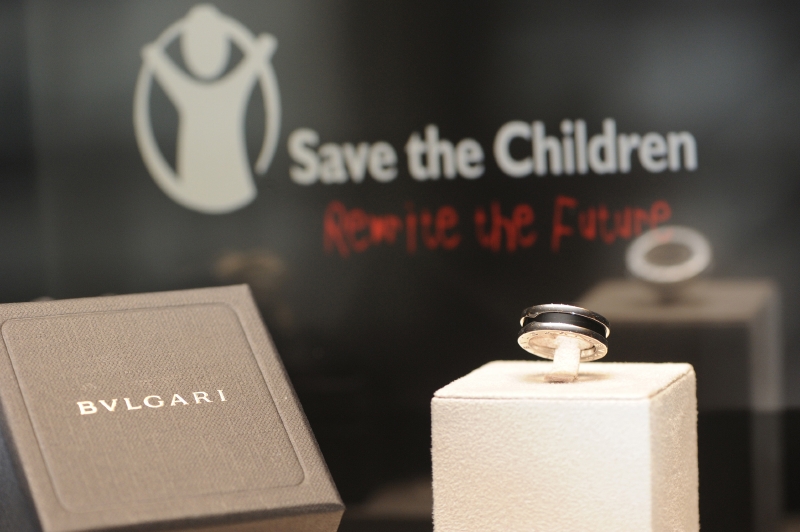新たな支援プロジェクトのために販売されている「ブルガリ セーブ・ザ・チルドレン」リング。販売価格44,100円のうち8,400円がセーブ・ザ・チルドレンに寄付される。
