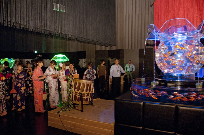8月の暑いある夜、19時に三井ホールの会場に続々と浴衣姿の男女が集う。オープニングイベント「FOX ナイトアクアリウム Party」が静かに幕を開けた。