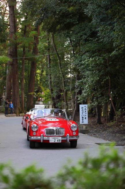 そのコンセプトを簡単に紹介すると、クラシックカーに乗って東京から京都まで旅をします。そしてその間、文化・自然遺産を訪れ、日本の伝統美や力強さを再認識するというものです。参加者はもちろん、訪れるクラシックカーを楽しみにしている地元の方も多くいらっしゃいますから、その意味ではちょっとした地域の活性化にも役立っているようですね。それに海外からの参加者もいます。きっとそこにはクラシックカー自体が国際的な文化遺産であるという意味合いも潜んでいるのでしょう。訪れる場所場所でクラシックカーが映えるのは、そんな共通項があるからだと感じます。