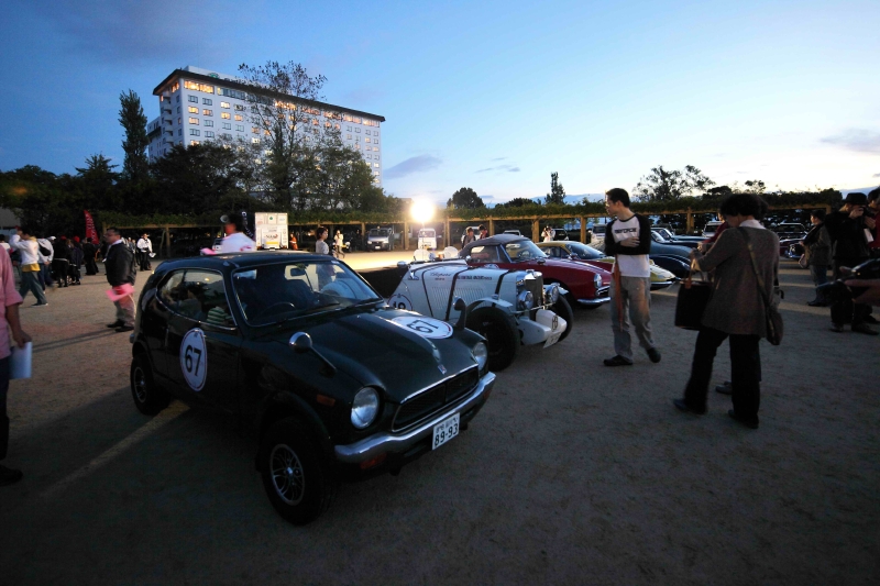 3日目のゴールは琵琶湖畔の長浜です。陽の落ちる時間のクラシックカーもまた乙なもの。数は少ないですが、輸入車に混じって日本車も参加しました。