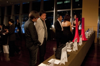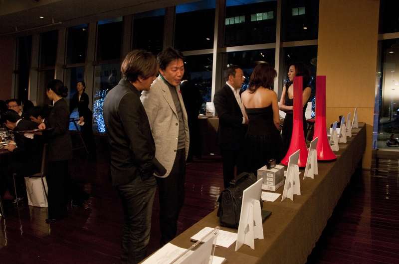 食事とともに、しばし歓談の時間となったが、その間に用意されたプログラムがこのパーティの名物となったサイレントオークションである。サイレントオークションとは文字通り、「声を出さない競売」のこと。会場後方のオークションテーブルには、チャリティを兼ねた本パーティの趣旨に賛同いただいた各社から出品されたアイテムがズラリと並び、入札希望者は自身のオークション参加番号と希望金額を入札シートに記入するという仕組みだ。締め切り時に最高金額を記入していた人が落札、となるわけだが、ファウストは一風変えたスタイルをとっており、一人が何度でも記入できる。締め切り間際の競り合いの後、入札シートがすべて回収され、パーティの最後に落札者が発表された。
